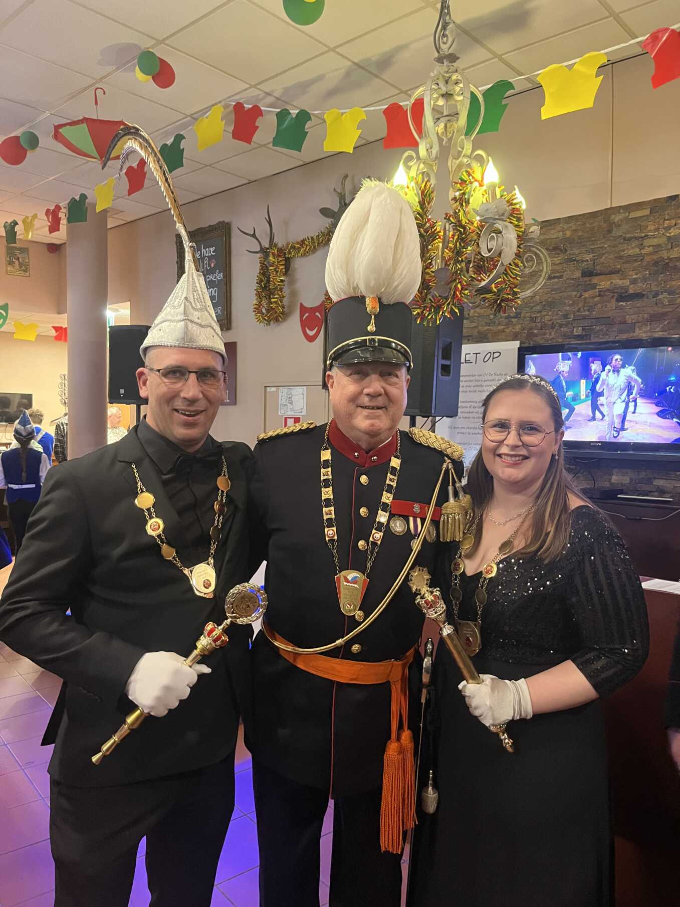 Wat was het weer een hele gezellige en drukbezochte avond met diverse optredens en uiteraard de uitroeping van onze nieuwe Prins. DJ Levi (Pluijmen) verzorgde de sjtimmung en hield de carnavalssfeer er goed in. Onze gasten van CV de Naate met Prins Sander I mochten we verwelkomen samen met het Jeugdprinsenpaar Prins Chris I en Prinses Bente I. Ook kwamen CV de Kaatboeren met Prins Bruce I nog bij ons op bezoek. Zij hadden een hele drukke avond maar hadden toch nog de tijd gevonden om naar ons lokaal te komen. Ook mochten we burgemeester Daniel Joppe met zijn echtgenote verwelkomen. Verkleed en wel bleef hij samen met ons carnaval vieren.